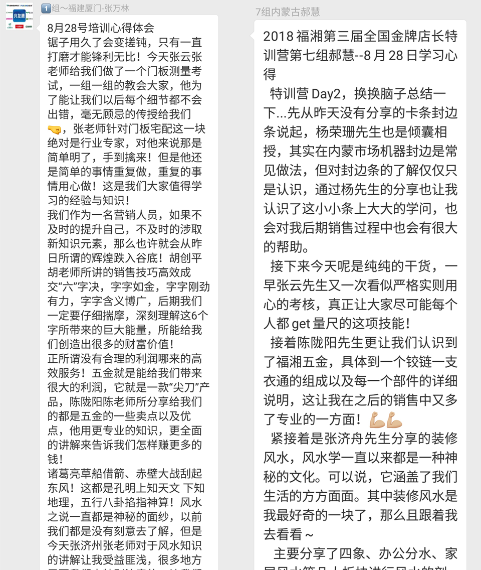 学员们长长长的学习心得,承载着大家对福湘极高的肯定和对导师们满满的感激。