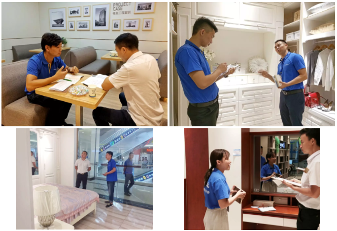 在培训的最后一天,学员来到湘江世纪城居然之家福湘定制旗舰店。从接待客户、卖点介绍、衣柜报价到签单送客,导师们针对每一个环节对学员们进行实地考核。
