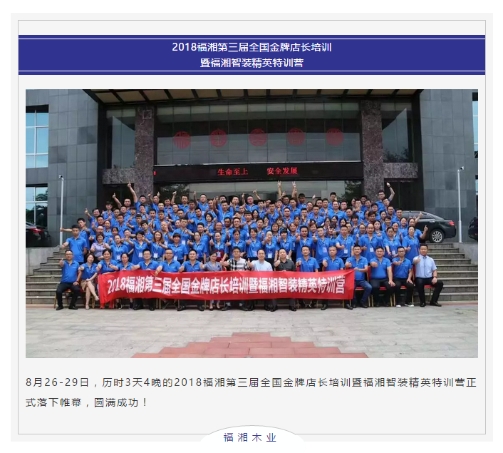 2018年9月,2018年福湘第三届全国金牌店长培训暨福湘智装精英特训营圆满结束!